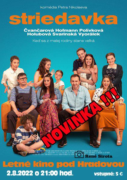 Novinka v Letnom kine !!! Česká komédia STRIEDAVKA utorok 2.8.2022 o 21:00 hod. Detské predstavenie MYŠI PATRIA DO NEBA utorok 2.8.2022 o 17:00 hod