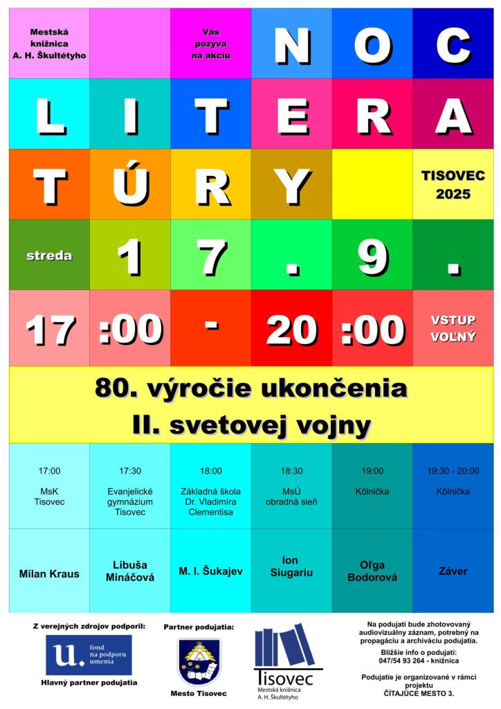 Podujatie bolo pripravené v rámci projektu ČÍTAJÚCE MESTO 3, ktorý z verejných zdrojov podporil Fond na podporu umenia.