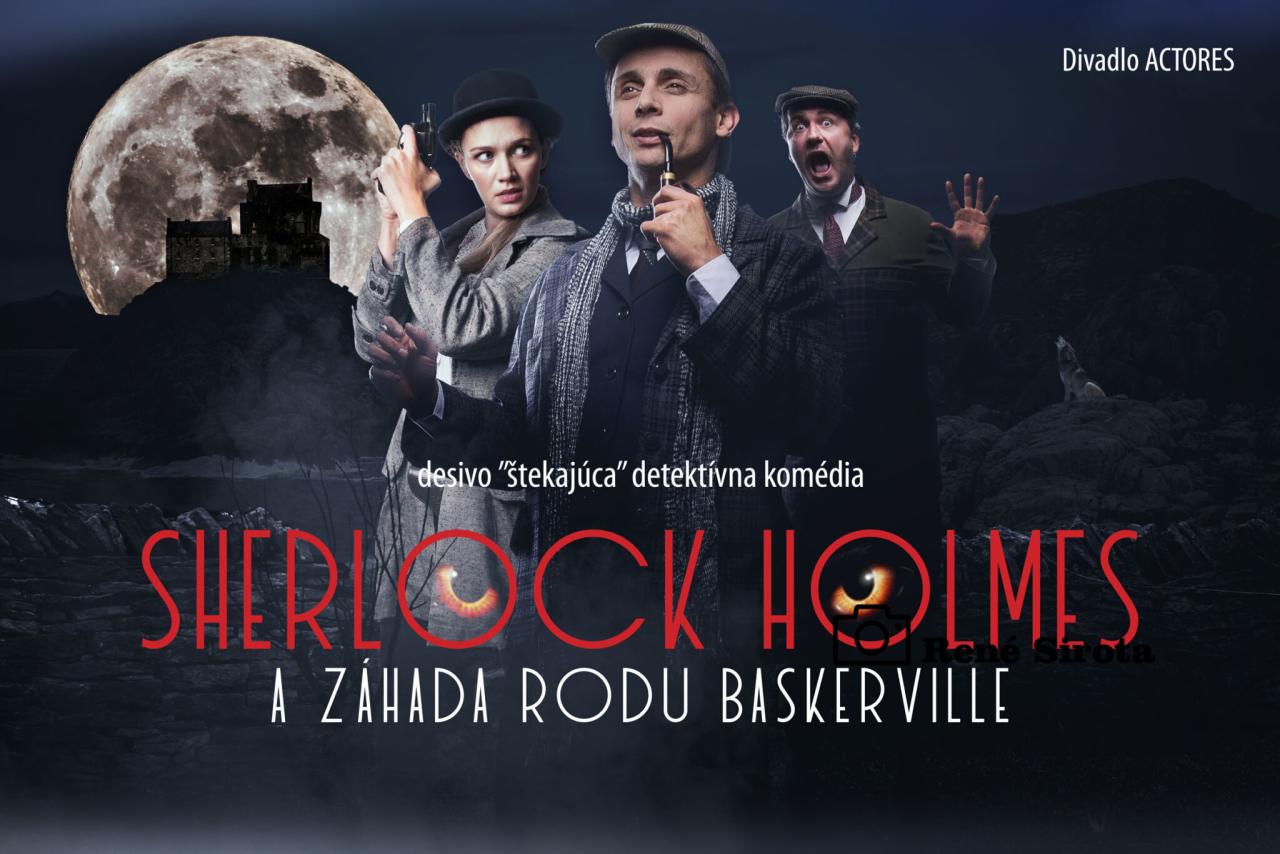 Pes Baskervillský je Holmesov najznámejší a najzáhadnejší prípad. Autor románu Sir Arthur Conan Doyle postupne vykresľuje desivú atmosféru slatín a oboznamuje nás s legendou rodu Baskerville, ktorý je prenasledovaný pekelným psom. Naši vyšetrovatelia sa snažia odhaliť klamstvá a uniknúť tak zavádzajúcim sieťam stôp. Hra prevlekov a nasadzovania si masiek naznačuje, že i „desivo – štekajúce“ môže byť komické.